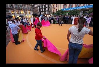 Dentro de los actos programados por la Diputación Provincial de Málaga para conmemorar su 175º. aniversario organizó esta lección a pie de calle, que acercó a un gran número de ciudadanos a la Fiesta Nacional. Por unas horas, la plaza de la Constitución se convirtió en un improvisado ruedo. En su centro una lona de color albero y cuatro burladeros delimitaban el redondel. Junto a ellos, esportones con capotes y muletas y un carretón con la cabeza de un toro.