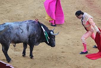 David Mora, que venía de rosa y oro, vestimenta que al fin y al cabo resultó ser el único punto en común con el torero Fandiño, no tuvo en esta de abril su mejor tarde. Al segundo, que cogió una extraña querencia en las maderas de contraquerencia, y que ya de por sí estaba en un límite preocupante de poder y casta, lo tundieron a capotazos para poder picarlo, y pese a los intentos del matador de Borox, ni el negrito entrepelao se vino arriba, ni la faena adquirió grandes vuelos. Más prometía Jaquetón, que nada más salir por toriles se engalló, como un tunante de Telecinco, o como un portero de discoteca, durante largos segundos, allá en su tercio, mientras a lo lejos un peón lo llamaba a grito pelao con un siniestro bamboleo de capote. Entretanto, el aficionado se llevaba las manos a la cabeza, sin chistar ni media, como sabiendo lo siguiente. Y efectivamente, el negrito, otro entrepelao, arrancando como una locomotora acabó estrellado con estruendo sobre el burladero. Acto seguido lo recibió un Mora arrebatado y arrinconado contra las tablas, como en una postal antigua, y que ante el carbón con el que arreó el galafate, le pagó cuatro convidás, volando la capa a una mano, que han sido, sin duda, las más caras de la feria. A Jaquetón en el sorteo no le tocó que la bolita donde iba dictada su futuro fuera escogida por la mano emisaria del torero Fandiño. Y caramba, si lo notó. Vaya por delante que no estaba sobrado de patas ni de casta, que fue una medianía, pero ya nunca se podrá saber que hubiese ocurrido de intentar Mora seguirle el juego de las distancias y los terrenos. La primera serie, en la que sí se dió esta coyuntura, nos dejó con la miel en los labios: acometividad en uno, y disposición en el otro. Incomprensiblemente el coleta acortó los caminos y el viaje del utrero quedó desangelado y noblón. Quién sabe. Con el que cerró el espectáculo se gustaron Israel de Pedro a caballo y el Chano con los rehíletes, cosa que no pudo hacer su jefe de filas, que no volvió a pasar de la manida corrección torera.