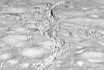 El polo norte de Encelado, el satélite de Saturno, es inesperadamente fascinante y complejo. Con el último sobrevuelo de la sonda Cassini la región norte era conocida sobre todo por la abundancia de cráteres. Pero el sobrevuelo de la semana pasada produjo imágenes con un detalle sin precedentes, como esta imagen que muestra los cráteres esperados, así como un patrón inesperado y tortuoso de vistosas grietas y fracturas. Este terreno roto ha sido fotografiado en latitudes más bajas donde han aparecido unos cañones profundos llamados Rayas de Tigre cerca del polo sur de Encelado.