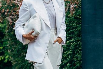 El total white es muy clásico, ideal para este final del verano, para presumir del bronceado de las vacaciones y se lleva incluso en los complementos: zapatos y bolsos a juego de la blazer y los vaqueros blancos.