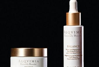 Sérum Essentially Beautiful Balance de Alqvimia se activa durante la noche para equilibrar los daños nocivos que la piel ha sufrido durante el día, para que al día siguiente se muestre lisa, descansada y calmada. Se aplican unas gotas por la noche sobre la piel de cara y cuello, previamente limpios y tonificados. PVP 91.50 €.