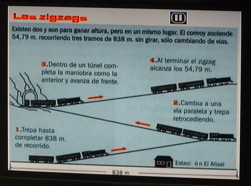 Así hace los zigzag, entra marcha atrás en un falso túnel y sale hacia adelante y con estas maniobras asciende varios metros y de esta manera no usa cremalleras, toda una creación del ingeniero Richard Maury, allá por el año 1935.