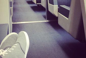 Hay soledad en este tren, porque los rieles son apenas un murmullo. Me toca hablar con los reflejos de las ventanas, y flirtear con el sonido del teclado mientras escribo esto, que no es más que ansias de llegar a la estación, de ver gente y bajar a la realidad.