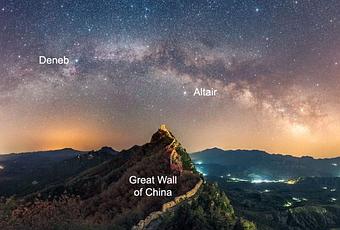 Esta primavera, el triángulo fue fotografiado junto con la banda central de la vía láctea sobre la gran muralla china. En este lugar, declarado como patrimonio cultural de la humanidad, fue construido durante el siglo VI en las montañas de Yan.