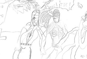 Mi hijo de 8 años también ha sentido, a su manera, la muerte de Stan Lee. Y espontáneamente ha hecho este dibujo, donde podemos ver a algunos superhéroes, en actitud doliente, frente a la tumba del Maestro.