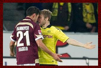 La Comisión de disciplina de la Federación Alemana de Fútbol ha castigado al internacional tunecino Karim Haggui( Hannover) con cinco partidos de suspensión por su expulsión del pasado odmingo ante el Borussia Dortmund. Haggui fue expulsadop en el minuto 76 por agredir a Jakub Blaszczykowski, que estaba caído en el campo.