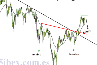 Esa zona además coincide con la posibilidad de que el IBEX 35 haya formado una figura de HCH invertido, que de cumplirse, podría llevar a nuestro índice a cotas cercanas a los 12.000 puntos.Si te preguntas cuando lo va a conseguir…puede que sea al año que viene o en dos años. Sólo hay que fijarse que para completar la primera parte de la figura a tardado un año, en superar el hombro derecho hemos necesitado un impulso de 3 meses más o menos.Como todos sabemos, las figuras de HCH tienen la particularidad de que muchas veces realizan un pull a la clavicular, a si que no sería extraño que durante la primera parte del año podamos ver como tenemos recortes hacia la zona 8.800-8.500. ¡¡Ojo!! Estos pull no siempre se producen, pero si tenemos en cuenta como está el SP500 (en máximos) y el resto de bolsas europeas, un recorte no es descartable.El IBEX 35 en gráficos diarios