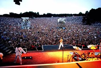 Y a eso de las ocho y media de la tarde, con el sol despidiéndose en la campiña, 'One vision' se hizo carne por obra y gracia de Freddie Mercury (vocalista), (guitarrista), Roger Taylor (baterista), John Deacon (bajista) y el músico de apoyo Spike Edney (teclados, y que sigue a día de hoy con Brian y Roger + Adam Lambert). La emoción se desató y miles de personas comenzaron a apretujarse aún más contra la valla, tratando de avanzar todo lo posible hacia el escenario. Definición práctica de jauría humana.
