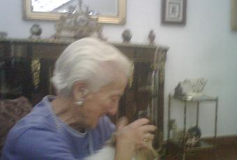 Poco antes del día de mi boda, Talia, mi actual esposa y yo fuimos a visitarla. Si bien en ocasiones previas había sido muy clara en que quería bisnietos e inclusive fue gráfica al explicar como había que traerlos, el último día no solo me hizo reír sino tambien llorar. Estuvo muy simpática y conversadora, ya con las repeticiones de tema cada 5 minutos, donde rondaban las preguntas sobre mi trabajo, si estaba contento, si seguía viviendo en el mismo departamento que había conocido, le comentaba a Talia que yo le había prestado mi cuarto y sobre un puente que llevaba al centro de la ciudad (no todos notan ese puente). Llevaba a Cousteau mi perro, al cual tomo en su brazos y lo acariciaba continuamente, una escena que se había repetido muchas veces, pero en esa ocasión me conmovió aún más, algo estaba pasando entre los dos, él no se le alejaba y la quería besar, ella lo veía con detenimiento, tuve que tomar varias fotos, no muy buenas pues fueron esporádicas y sorpresivas para no matar el momento. Obviamente salió a la luz el hecho de tener familia, que si ibamos a tardar en “encargar”, etc.