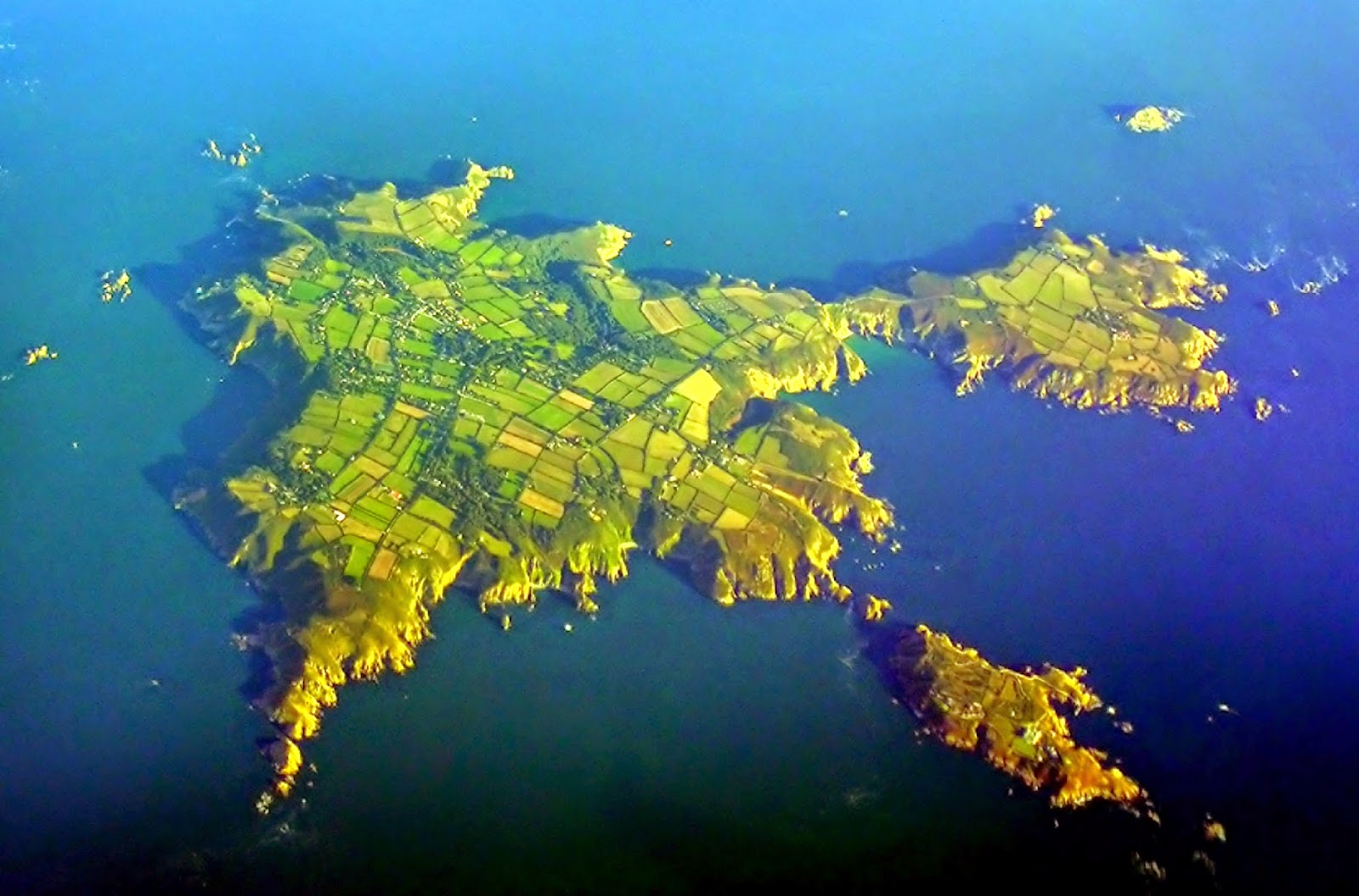 Sus 600 habitantes viven en la isla de 5,44 km2 . Antes de la reforma constitucional de 2008, era gobernaba por el Chief Pleas (parlamento feudal) formada por 40 terratenientes de la isla no elegidos democráticamente y liderados por el "Seigneur". Los Seigneurs han gobernado la isla desde 1565, cuando Isabel I le otorgó la isla al noble Hellier de Carteret para que la protegiera de los piratas. Los Seigneurs pagaban a la corona británica 1,79 libras anuales para mantener la isla y, a cambio, le daba el privilegio de otorgar a los terratenientes el permiso de comprar y vender sus casas, pero solo si juraban lealtad a la corona y pagaban al señor 1/13 del precio de adquisición de la vivienda.Muchas de las leyes, particularmente las relacionadas con la herencia y el gobierno del Seigneur, han cambiado poco desde que fueron promulgadas en 1565 bajo el reinado de la reina Isabel I. Por ejemplo, el Seigneur mantuvo el privilegio único en la isla de conservar las palomas y, hasta 2008, la única persona capaz de poseer un perro no esterilizado. También posee todos los desechos varados entre las mareas alta y baja.