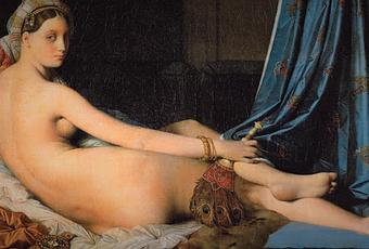 (Óleo neoclasicista y romántico del pintor francés Jean-Auguste-Dominique Ingres, La Gran Odalisca, 1814, Museo del Louvre, París.)