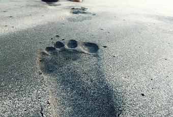Camina descalza sobre la arena