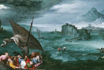 (Óleo sobre bronce Cristo en la tempestad del mar de Galilea, 1596, del pintor flamenco Jan Brueghel el viejo, Museo Thyssen Bornemisza, Madrid.)