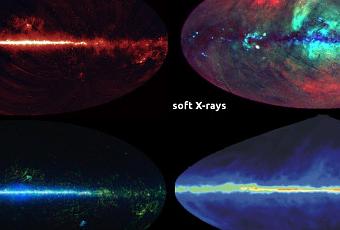 Desde la luz visible donde predomina el disco de nuestra Vía Láctea, pasando por el infrarrojo, los rayos gamma y los rayos X que resaltan fenómenos como las supernovas, las estrellas de neutrones y los agujeros negros.