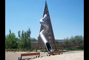Si no tienes mucho vértigo puedes subir por la pirámide de 13 metros para lanzarte por su tobogán, una sensación única, sobre todo al ver la cara de mis hijos cuando me vieron salir del túnel.
