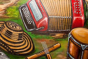 El Vallenato, viene a ser la música más representativa de este país latino, muy conocido por toda Sudamérica y que en España, según me comentó un amigo, lo trajo a España Carlos Vives con su "Gota Fría". Como todo en esta vida, el Vallenato tiene mucho estilos diferentes que van desde Diomedes Diaz, Kaleth Morales o el que más he escuchado por Colombia Silvestre Dangond, entre otros. Pero ¿de qué se compone una banda de vallenato? ¿cuáles son sus instrumentos básicos? en este cuadro que pintó un amigo está perfectamente representado...