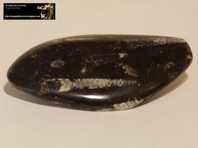 Orthoceras regulare.Otro Nautiloidea, mucho más reconocible como tal por su mayor semejanza con las pocas especies que sobreviven hoy es el siguiente espécimen, llamado Cenoceras lineatum. Habitó los mares del Jurásico Bajociense y presenta una mayor complejidad estructural con respecto a sus parientes más primitivos. El individuo particular que presento procede de Francia y se presenta en Caliza.