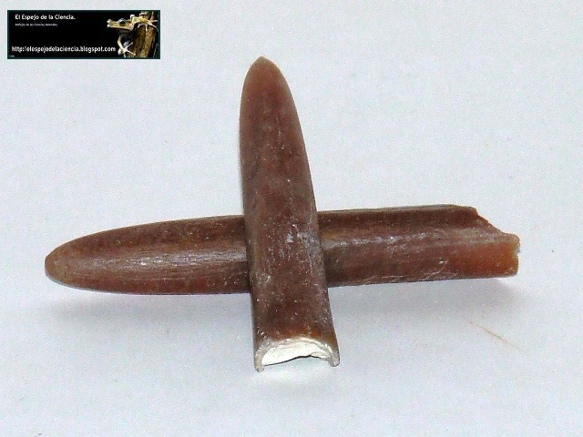 Neohibolites minimus.En resumen, los Cefalópodos conforman la Clase morfológicamente más compleja de entre los Moluscos, presentando un sistema nervioso realmente sofisticado y unas cualidades natatorias y comunicativas sin parangón entre los Invertebrados. Si el lector desea contemplar un mayor número de especímenes de esta Clase, la cual habita los océanos del mundo desde hace nada menos que 500.000.000 de años, solo tiene que visitar la página de seguidores en Facebook de El Espejo de la Ciencia, donde encontrará un álbum fotográfico especialmente creado para ello.