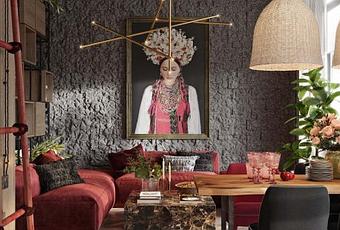 Con un color poco habitual, y sin embargo muy en tendencia para esta nueva temporada otoñal, el color granate, aquí lo que ha conseguido es que el espacio se plague de elementos rústicos, atípicos, y que sin embargo, mantenga una elegancia única.