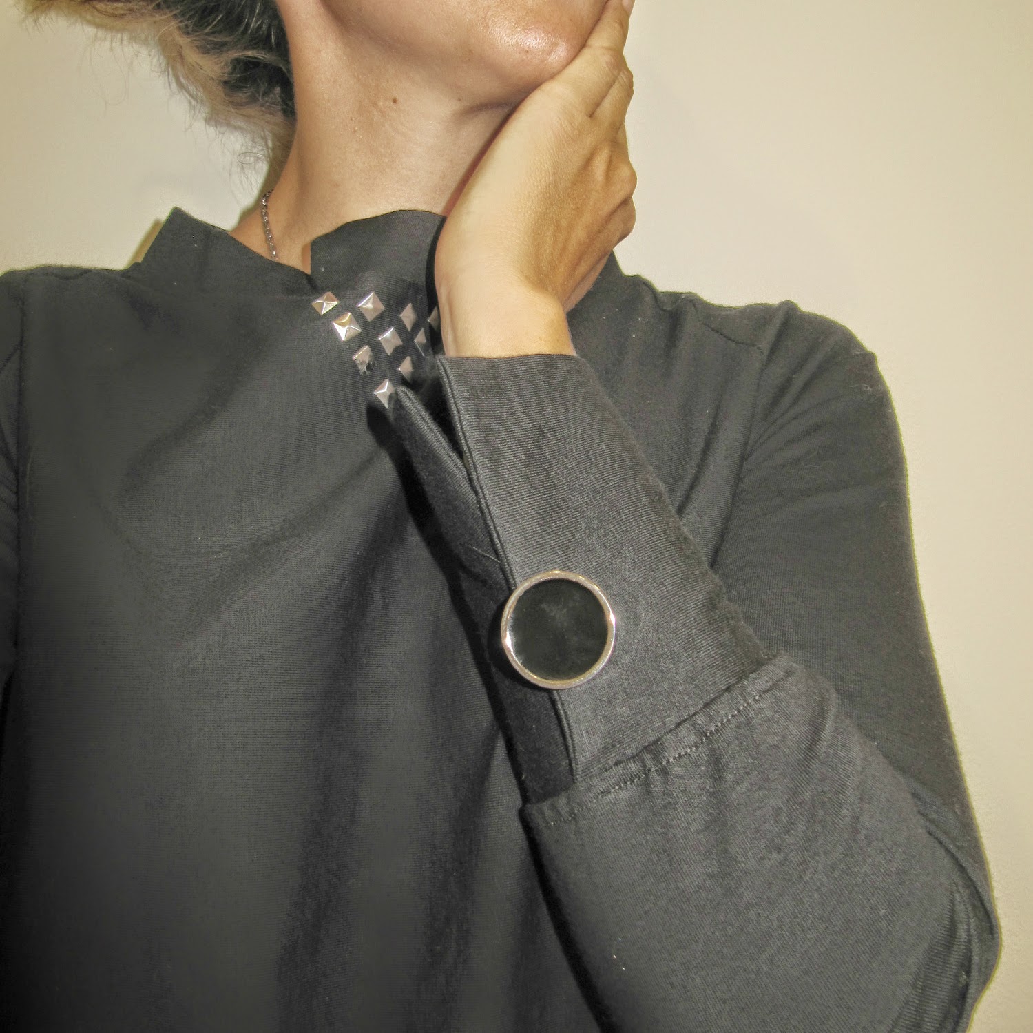 Estoy super contenta con el resultado de las tachuelas, me encantan! En esta foto los puños los tengo remangados hacia atrás.