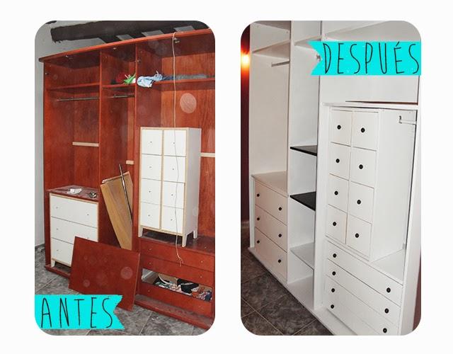La cuestión es que llevamos ya unos añitos en la casa y por muy grande que sea la falta de espacio empieza a hacerse notar, sobretodo en el tema ropa. Si que quedó chulo sí, clicka la imagen de abajo para ver el proceso. Pero... para dos personas un pelín justo.