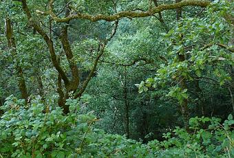 Mientras, robles, tejos o castaños, que nada saben de economías y cuyo tiempo parece infinito por longevo, se muestran orgullosos en extensos bosques autóctonos ajenos a la repoblación por pinos o eucaliptos. Hay ejemplares inmensos, todos distintos en el capricho de su forma, venerables y pacientes. Las infinitas corrientes de agua limpia se jalonan por remansos y cascadas, generando un rumor ancestral. El sol que se tamiza entre las copas muestra un suelo alfombrado de musgo, hojas y helechos.