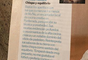 La resaca de la Estrella Michelín cosechada por el Restaurante Mu-Na, sigue dando alegrías al alma mater de la cocina del restaurante ponferradino. José Carlos Capel, crítico gastronómico del diario El País, incluye a Samuel en el reportaje “Promesas de los fogones” de El Viajero que está disponible hoy en los kioskos de toda España.