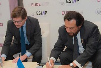 Con motivo de la visita bilateral a España del vicepresidente de la República de El Salvador, Dr. Félix Ulloa hijo, en su calidad de rector de la Escuela Superior de Innovación en la Administración Pública de El Salvador (ESIAP), EUDE Business School ha firmado este lunes 7 de noviembre un convenio de cooperación con la idea de establecer mecanismos de coordinación y colaboración entre las partes. El objetivo del acuerdo es implementar actividades conjuntas de desarrollo de las competencias y de los conocimientos de los estudiantes de administración pública, así como facilitar un desarrollo institucional mutuamente beneficioso.