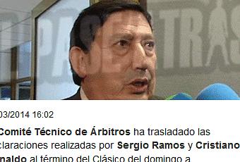 Mundo Deportivo se hacía eco, ayer, de la denuncia del Comité Técnico de Árbitros hacía Ramos y Cristiano Ronaldo por sus declaraciones al terminar el clásico:
