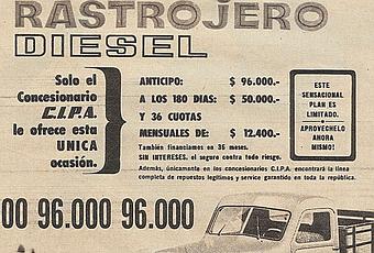 Los 96.000 pesos moneda nacional eran el anticipo del valor total del Rastrojero Diesel de 1963 y un posterior pago a 180 días y luego 36 cuotas mensuales. De hecho esta camioneta se hizo muy popular en los años sesenta. Hubo años que fue líder en fabricación superando a las camionetas de las terminales de Estados Unidos. En ADEFA (Asociación de Fábricas de Automotores) podemos encontrar esas cifras para compararlas. Como vimos en una reciente nota histórica.