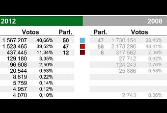 Otro dato curioso es que de todos los partidos que se presentaron a las elecciones Andaluzas, PP, PSOE, PA, CANDA, SAin y PFyV pierden votos con respecto a las elecciones de 2008, es decir el PP tiene más parlamentarios en 2012 con menos votos que en 2008, y encima consigue 3 parlamentarios más que el PSOE con solo 44 votos de diferencia, un sin sentido. Sí, han leido bien, pierden votos, miren el siguiente cuadro:
