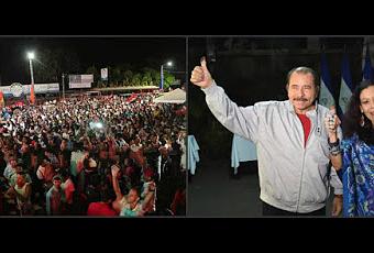 Los reunidos celebraban el triunfo popular, que ratificó al Comandante Daniel Ortega como presidente de la República y a Rosario Murillo, en la nueva fórmula presidencial como vicepresidenta. Ya en el segundo boletín se mantenían los festejos y los guarismos fueron rotundos, con el 66.3 % del escrutinio.