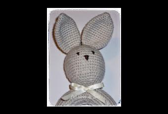 Utilicé el mismo tipo de lana lana que para el resto de labores de bebé, y es del mismo color que el sonajero Sr. Conejo.