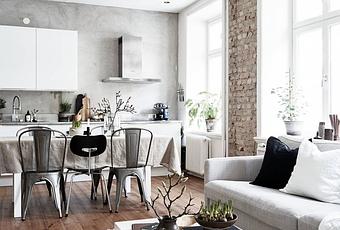 Cuando afrontamos la reforma de un apartamento uno de los temas son las paredes, que tipo de color poner, si pintura o cerámica … en que color pintar, si hacerlo todo de un color o no. En este apartamento el revestimiento utilizado ha sido el ladrillo visto, cemento pulido y la madera clara en su suelo, que como resultado crea una combinación perfecta.