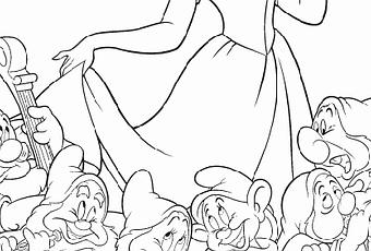 free coloring pages snow white - Disney Princess Snow White with 6 of the 7 dwarves coloring page