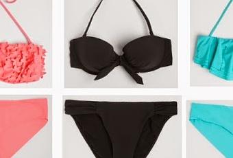 Las propuestas de Oysho para bikinis lisos y de un único color. Suelen decir que si tenemos las caderas anchas debemos huir de estampados -al menos en la parte de abajo - y optar por tops con volumen para disimular.