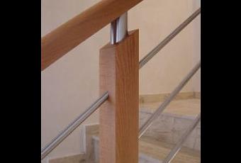 Una propuesta decorativa que está funcionando en los últimos tiempos son las combinaciones de la madera con otros materiales, como el acero inoxidable, el hierro o el cristal. Podemos ofrecer barandillas de madera con los balaustres en acero inoxidable y modelos que, en su formación, combinan madera y acero inoxidable con varillas horizontales. La combinación de la madera y el acero inoxidable confiere al conjunto un producto moderno, cálido y luminoso.