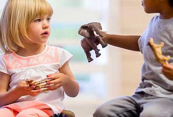 Siempre esté al tanto de las etiquetas de seguridad y seleccione juguetes apropiados para la edad y use juicios apropiados al seleccionar juguetes para que su niño juegue. Considere el desarrollo, el temperamento y el comportamiento general de un niño al elegir juguetes y recuerde que cada niño es único en su desarrollo. Pegarse a los juguetes que están etiquetados para la edad de desarrollo del niño proporcionará el disfrute y la estimulación para el joven.