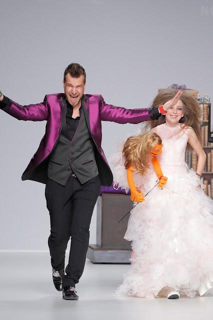 Su hija disfrazada de muñeca, junto con otras tres bailarinas abrieron una pasarela llena de terror y de diseños increíbles. El colorido se apoderó de los vestidos de Jordi Dalmau, quién con