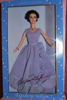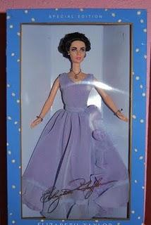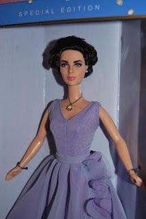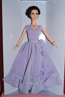 Elizabeth Taylor luciendo el traje y el collar de SwaroskiElizabeth Taylor, mas conocida como Liz Taylor nació en Londres el 27 de febrero de 1932 y murió en los Angeles, EEUU, el 23 de marzo de 2011. Fue una famosa actriz inglesa que desarrolló su carrera en EEUU, trabajó en cine, teatro y televisión. Fue reconocida por su espectacular y deslumbrante belleza, con unos ojos de un rarísimo color violeta. Fue tambien muy popular por su tormentosa vida privada y su pasión por las joyas.Esta muñeca Barbie recrea a la impresionante Elizabeth Taylor, con este sorprendente vestido con media manga en gasa violeta. Los tonos de color púrpura complementan perfectamente los luminosos ojos violeta de Taylor. Este vestido muy sofisticado se complementa con joyas impresionantes, lleva un collar con un cristal de Swaroski real. Los detalles del rostro capturan con gran fidelidad los rasgos de Elizabeth. Año 2000.Timeless Treasures collection. Homenaje a Elizabeth Taylor