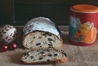 El stollen es un pan muy contundente, lleva mucho azúcar, mucha mantequilla y mucho de todo, así que para comerlo los días de frío es genial. El stollen tiene su orgien en Alemania hace 600 años y tiene una forma característica que quiere recordar al niño Jesús recién nacido con los pañales.