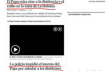 Como parte de la guerra subversiva de los medios apegados a la recalcitrante derecha, se ven en el deber de manipular, subvertir y mentir todo lo relacionado con la visita del Papa Francisco a Cuba. El País, un medio que a viva voz dijo que sería el principal medio que atacaría con todas sus fuerzas a la Revolución Cubana.