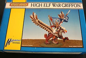 La figura de Eltharion montado en Ala de Tormenta fue diseñada por Trish Morrison y Jes Goodwin para la cuarta edición de Warhammer Fantasy. Esta es una de las figuras diseñadas bajo la marca Marauder Miniatures. La figura fue anunciada en el número 158 de la edición inglesa de la revista White Dwarf de febrero de 1993 y en el número 1 de la edición española de noviembre/diciembre de ese mismo año. En la edición inglesa de la revista aparecía un relato corto de Bill King en el que se narraba la lucha entre Eltharion y Grom. Además aparecían las reglas para jugarlo en Warhammer. Estas reglas también estaban incluidas en la caja, algo no habitual. No creo recordar que después de esto aparecieran más reglas en ninguna caja.