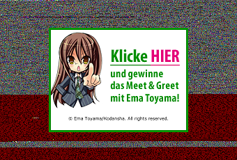Ema Toyama estará presente en la Feria del Libro de Leipzig, en Alemania, y han preparado un “Meet and Greet” con ella el próximo 16 de marzo. Los que quieran participar tienen que rellenar un cuestionario y enviarlo por correo electrónico junto a un video o un escrito explicando porque son los mayores fans de Ema Toyama.