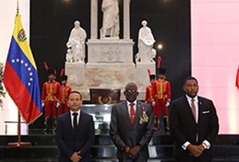 El Embajador de la República de Trinidad & Tobago, Edmund Dillon en compañía del Viceministro de Relaciones Exteriores para El Caribe, Raul LiCausi y un concurrido número de representantes diplomáticos acreditados ante el Gobierno de la República Bolivariana de Venezuela, honraron al Libertador Simón Bolívar ante su sarcófago con motivo del 61° Aniversario de la independencia del país caribeño.