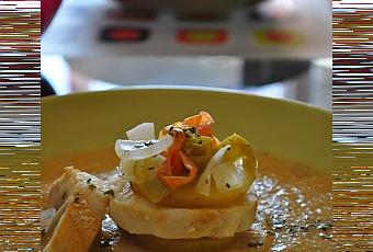 Añadimos al caldo los medallones de merluza, no conviene dejarlo que hierva demasiado pues se puede endurecer, asi que atentos.