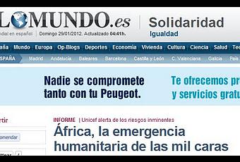 "Se acaban de cumplir seis meses desde la declaración de hambruna en el Cuerno de África. Un total de 13,3 millones de personas en el Sahel corren un grave riesgo de muerte por desnutrición. Unicef ha solicitado a la Comunidad Internacional un total de 600 millones de dólares para poder financiar su actividad respecto a las llamadas 'emergencias silenciosas..... Leer todo el artículo en el Mundo Digital