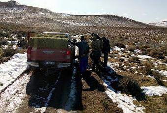 Piedra del Aguila.- Tanto Telefé Neuquén como el Canal de Noticias TN de la Capital Federal, se interesaron por la grave situación que viven diferentes rincones de neuquen, por la gran nevada caída. Varios lugares han quedado a la deriva, aislados totalmente para recibir cualquier tipo de ayuda. Un grupo de personas conocidas en Piedra del Águila, se animaron a un poco más. Conocedores de la zona, baqueanos para otros...casi todos los días intentan e incluso llegan a esos lugares dónde no se puede llegar. Convertidos en una especie de Robin Hood para quienes viven en los parajes y los reciben eufóricos al ver que sus víveres y medicinas han llegado. Desde los parajes, comisiones de fomento lo contactan y de acuerdo a su disponibilidad acceden...los mismos pobladores le pagan el combustible si es que pueden - dice Emilio - lo hacemos por placer, por ayudar...no es una competencia es una cadena. Hubo gente que me ayudó cuando no tenía nada...se lamenta cuando escucha que dicen que ellos pasan por arriba del intendente de Piedra del Águila, o que la ex intendenta les manda elementos para distribuir en la zona rural. Los forrajes, las mercaderías o los medicamentos los compran los pobladores, nosotros -dijo - solo ponemos los vehículos y las ganas de llegar a cada lugar.