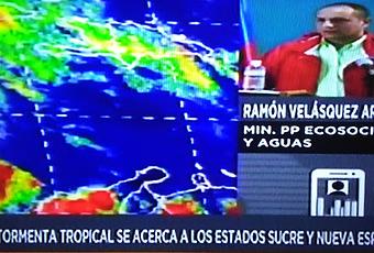 Durante un contacto telefónico para Venezolana de Televisión, Velásquez señaló que para el miércoles se prevé que la tormenta llegue a la zona insular de Venezuela y afecte a la islas La Blanquilla, La Orchila y Los Roques.