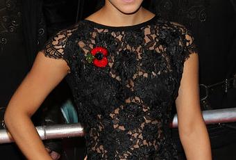 El vestido es una preciosidad compuesta por encaje en la parte superior y plumas en la inferior. Completando su look unos pumps de Charlotte Olympia.http://feeds.feedburner.com/ModaMisObjetosDeDeseo